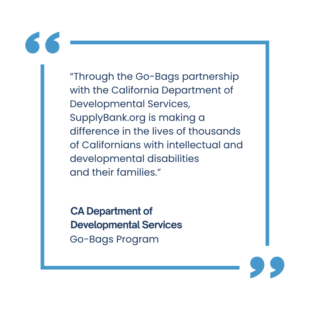 Our partnership network enables us to integrate our distribution programs into critical wraparound services–including homeless and housing programs, domestic violence shelters, disaster recovery services, Women, Infants & Children (WIC) clinics, First 5 family resource centers, school districts, county offices of education, and other agencies. These partnerships increase efficiency and reliability and help our partners deliver better core services—ultimately creating a stronger, more equitable social safety net in California.